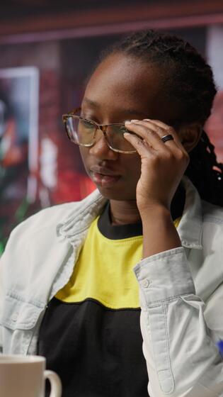 Vertical Tired teleworker yawning while typing on notebook keyboard in home office to write emails. Exhausted remote worker feeling overworked, suffering burnout while using laptop, camera B Pro Video