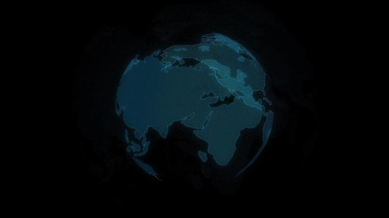 Digital dotted planet earth loop animation isolated on a black background. Rotating stylized world globe with glowing particle dots. Big data technology, business, communication, or digital concept Pro Video