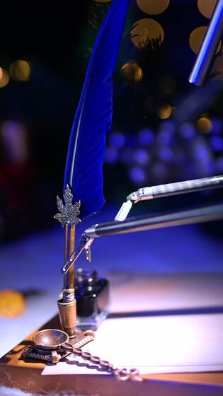 Robotic arm taking the writing pen from a holder and passing it to another arm. Da Vinci robot is getting ready to write. Blurred backdrop. Vertical Pro Video