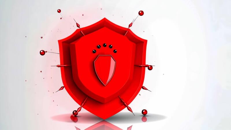 Dynamic red shield transforming in motion with exploding elements and shiny surface animation. Antivirus program, computer protection, electronics protection Pro Video