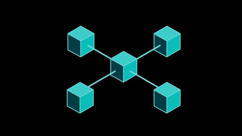 Blockchain cube, Digital data flow symbolized by line flowing to each other block. Finance and digital money technology. Pro Video