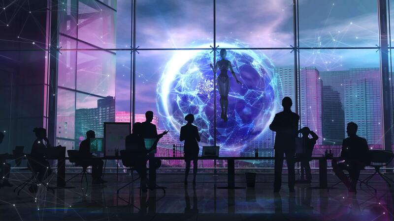 Working with artificial intelligence in a corporation. 3D render Pro Video
