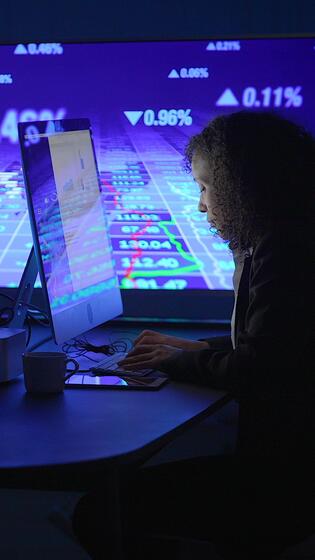 A Focused Trader Analyzing Various Stock Market Data and Trends on His Computer Screen Pro Video