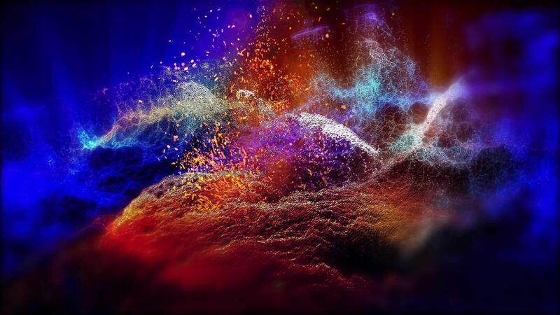 A fantastic landscape of an unknown planet in red and blue tones, with a whirlwind of sparks, smoothly changes perspective, creating the effect of flight and the presence of the observer. Pro Video