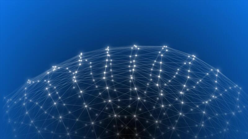 Royal blue color mesh pattern glowing low poly geometric design rotating sci-fi 3d sphere dark Loop-able technology background Free Video