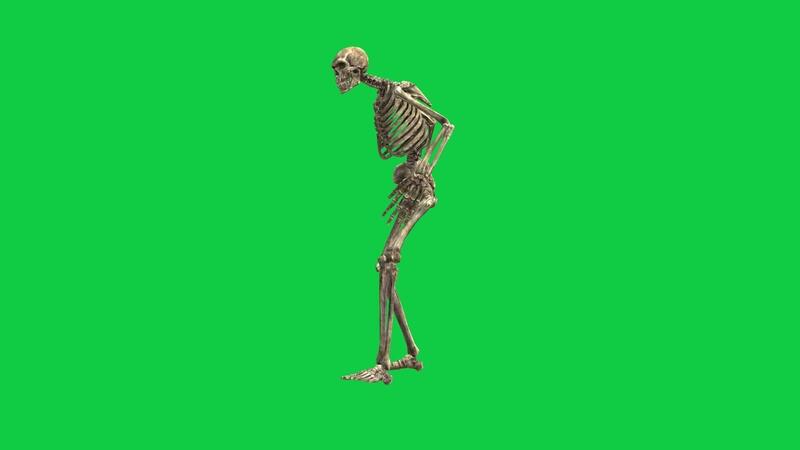 Skeleton walking side view loop 3d render animation isolated on green screen background Free Video