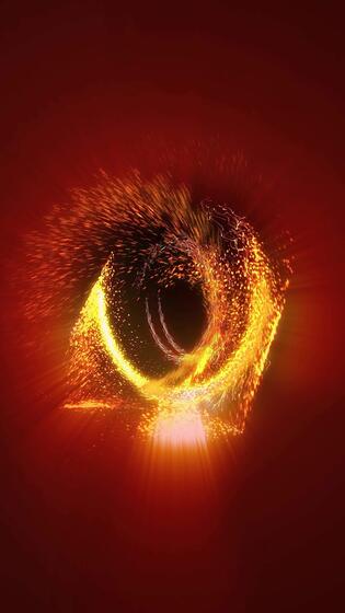 The yellow disk of the space and time portal, emitting sparks, rotates quickly and efficiently against a red background. Free Video