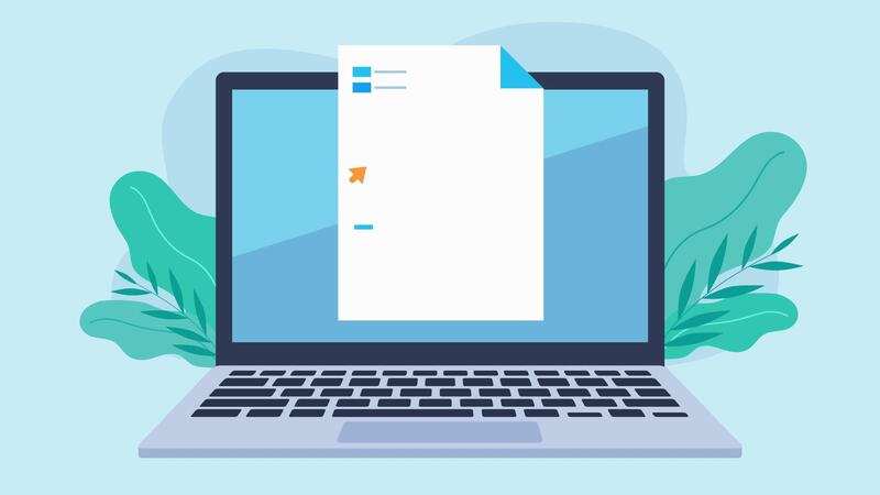 Document with graph on laptop screen. The chart gradually animates and then subsequent text elements. Clip in resolution up to 4k. Animation in flat style. Laptop z danymi na ekranie Pro Video