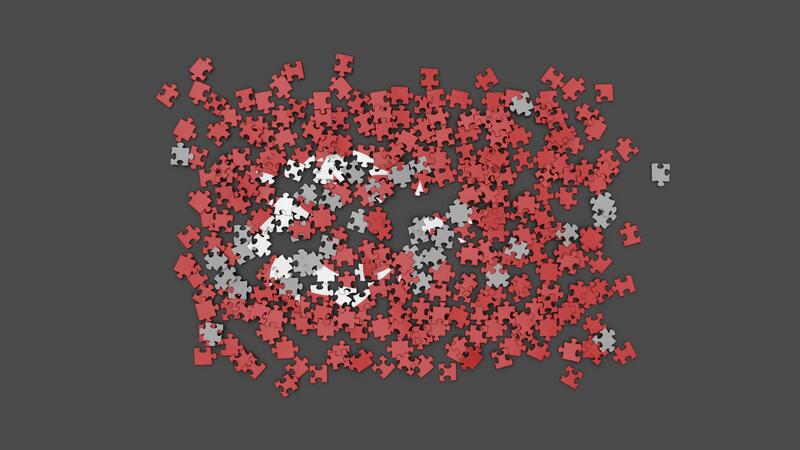Animation of a Turkish flag falling onto the surface, assembled from a puzzle with an alpha channel and a shadow. Wind blows the scattered pieces out of frame Pro Video