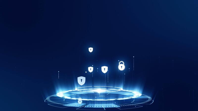 Motion graphic of Blue security shield icon connection with rotation of futuristic circle technology abstract background Pro Video