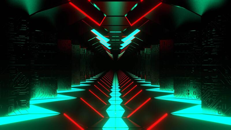 Turquoise and Red Sci-Fi Corridor with Microcircuit Texture Background Vj Loop I 4K Pro Video