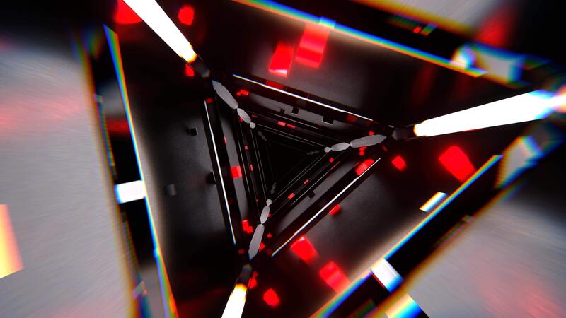 Red and White Abstract Triangular Corridor with Shimmering Cubes Background Vj Loop I 4K Pro Video