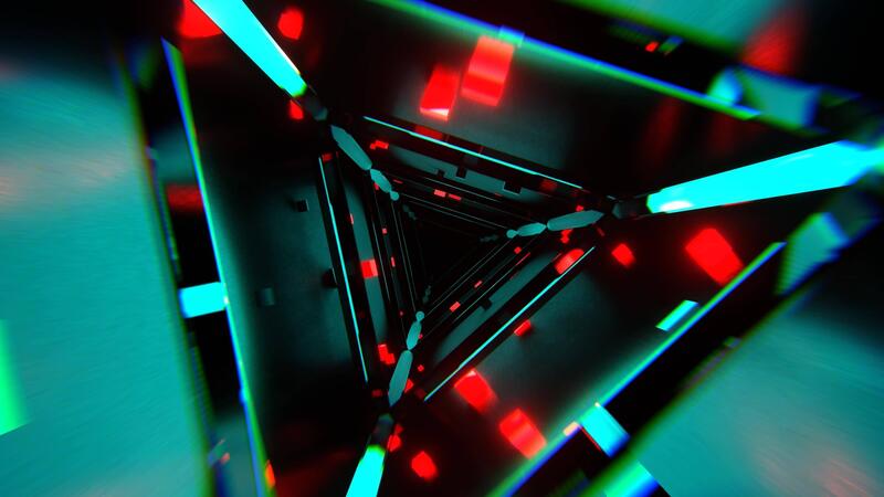Turquoise and Red Abstract Triangular Corridor with Shimmering Cubes Background Vj Loop I 4K Free Video