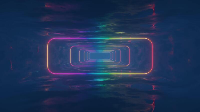 Glowing neon lines frame flying in tunnel motion background, seamless loop Free Video