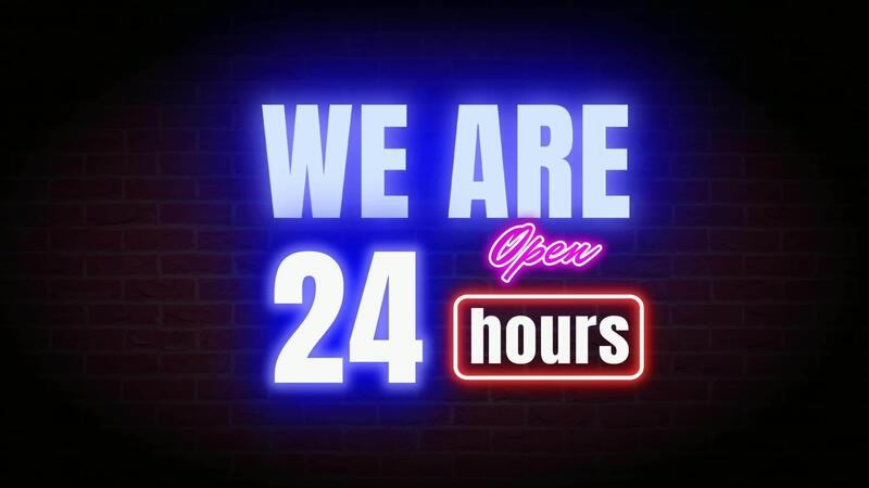 animated text we are open 24 hours neon style with brick texture background text open blinking Free Video
