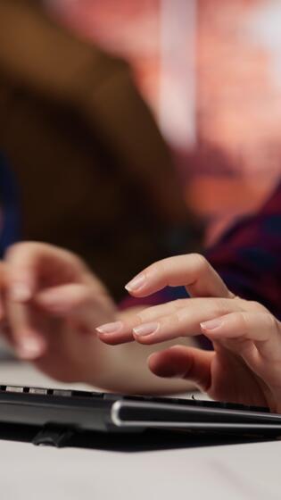 Vertical Startup engineer conducting detailed code review to fix bugs, identifying potential performance and technical issues with company software. IT worker debugging and optimizing code, camera B closeup Pro Video