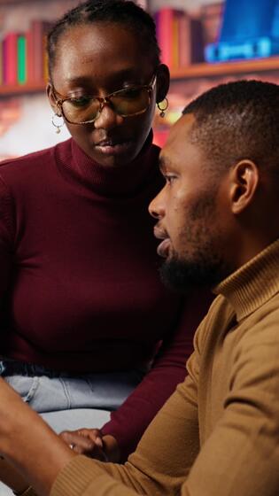 Vertical Coworkers looking at PC screen in startup office, managing cloud computing resources and platforms to train machine learning models. Teamworking colleagues monitoring venture company systems, camera B Pro Video