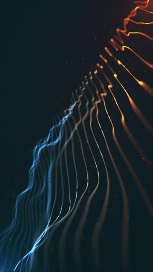 Tech background with a smooth flowing blue and gold fractal wave of glowing light beams rippling towards the camera. This vertical abstract technology animation is full HD and a loop. Free Video