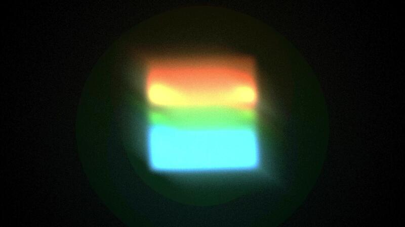 4K seamless loop of abstract animation of a rotating rectangle of light with orange, green, and blue sections Pro Video