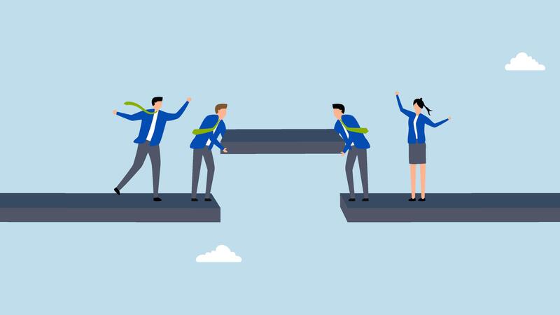 Build business bridge connect path together, 4k animation of professionals collaborate to create the pathway for connection. Pro Video