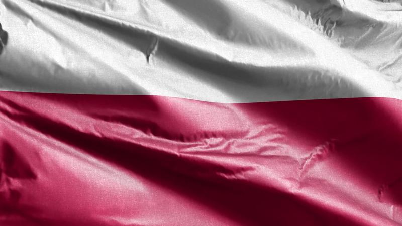 Poland textile flag slow waving on the wind loop. Polish banner smoothly swaying on the breeze. Fabric textile tissue. Full filling background. 20 seconds loop. Pro Video