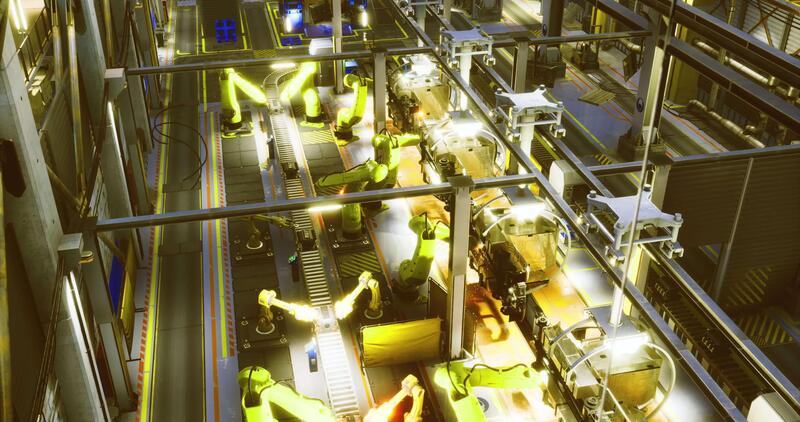 Advanced robotic assembly line operating in a modern factory setting Pro Video