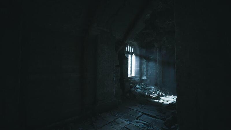 Atmospheric light streaming through a broken window in an ancient building Pro Video