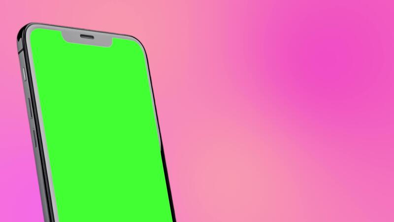 Animated of a smartphone with a green screen, ideal for editing or using chroma key in videos on a pink background Free Video