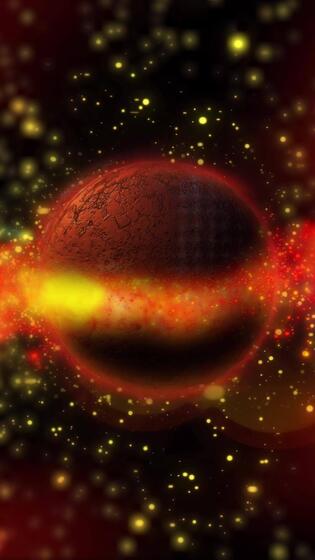 A voluminous planet with a metallic tint, iridescent in different colors, rotates in outer space. Free Video
