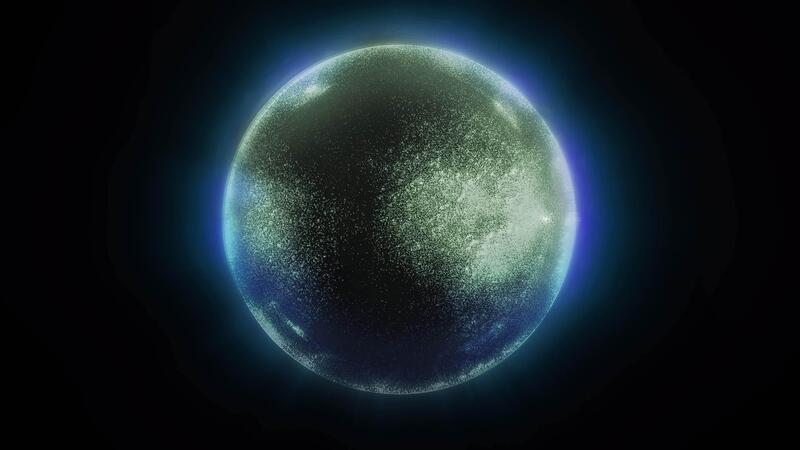 An ionic sphere with moving plasma and energetic particles inside rotates in space. Free Video