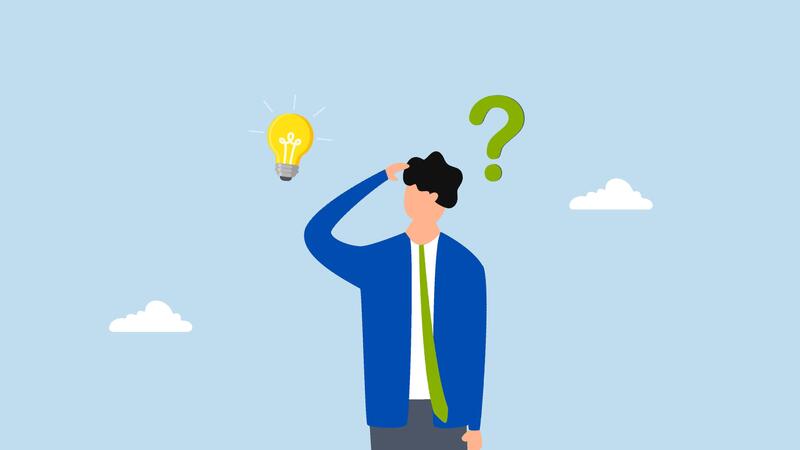 Solution to solve problem, 4k animation of Entrepreneur considers way to address an issue regarding lightbulb and question mark Pro Video