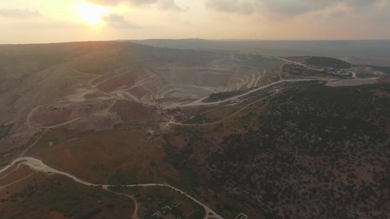 Aerial view of opencast mining quarry with lots of machinery at work Pro Video