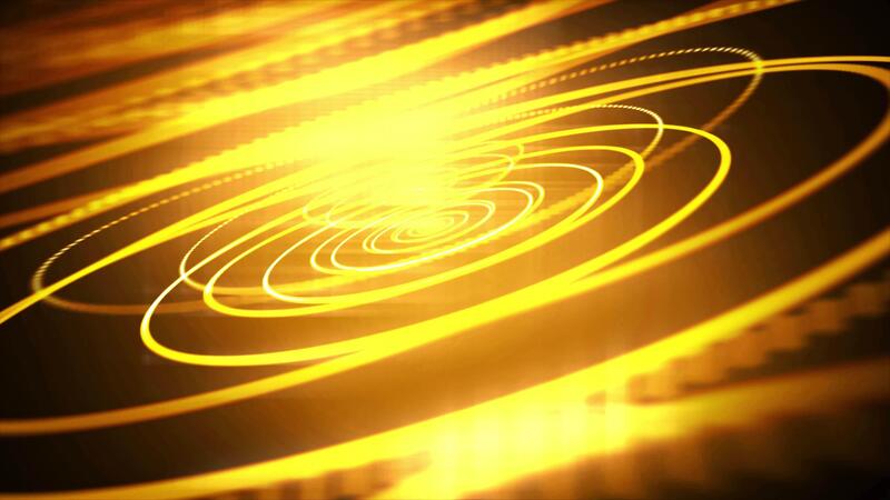 Futuristic golden technology background with concentric circles, lines, and a bright light, creating a dynamic and engaging abstract visual. Pro Video