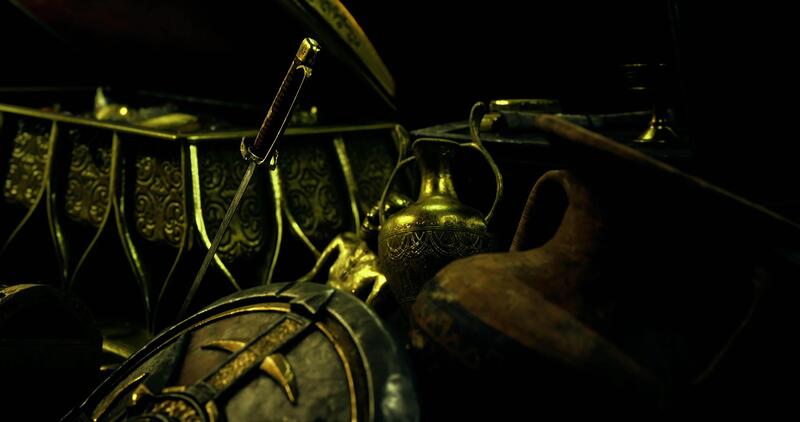 Ancient treasures and artifacts displayed in a dark setting Pro Video