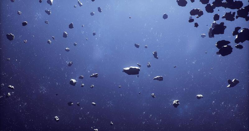 Expansive view of numerous asteroids floating in deep space Pro Video