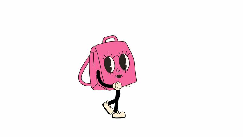 Groovy Retro Cartoon Backpack Character, walking in a seamless loop animation. Transparent background for easy use in designs and overlays Free Video