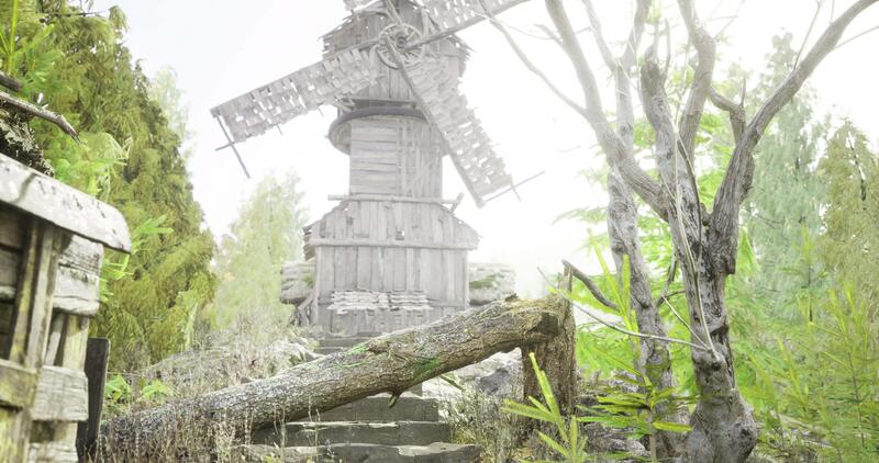 Glimpse of an old windmill surrounded by lush greenery and rustic structures Pro Video