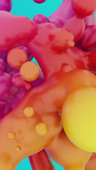 gradient red , yellow pink vertical vivid colorful meta balls morphing 3D blobs loop Pro Video