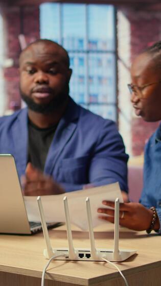 Discouraged African American couple struggles with an unstable Wi Fi network, getting angry while they are troubleshooting to fix the error. Stressed people with lots of remote tasks. Camera A. Pro Video