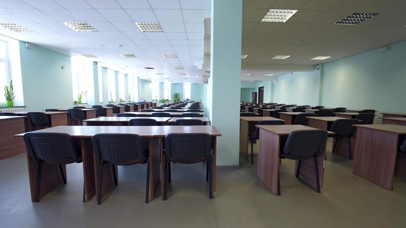 Modern classroom without students. View of empty modern classroom with chairs Pro Video