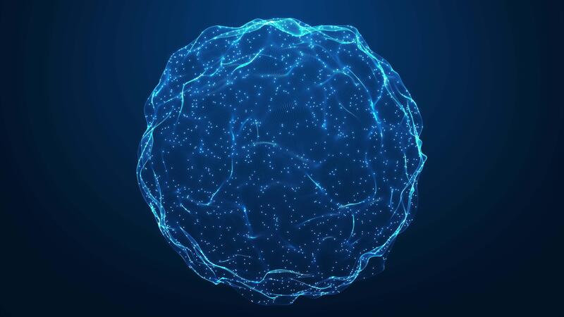 Abstract sphere on dark blue background. Looped sphere of alphabet particles. Abstract technology, artificial intelligence by enter command prompt for generates something. Seamless loop 4k Free Video