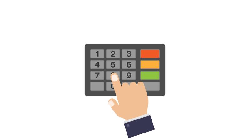 Hand pressing a button on keypad. Suitable for technology, security, access control concepts Pro Video