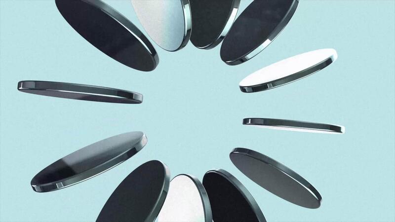 Hyper 3D Visual Motion. Cinematic Shape Array with Sphere Coin Metal. 3d render Pro Video