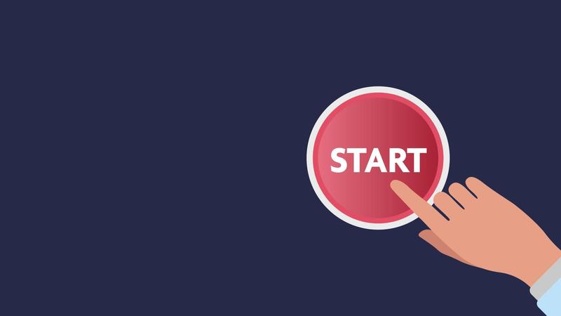 Animated red start button designed for web marketing and social media engagement. Flat design with smooth motion effect, ideal for interactive digital content, UI UX elements, call to action buttons. Pro Video
