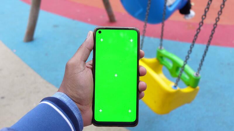 Using a smartphone with a green screen in a vibrant playground setting Pro Video