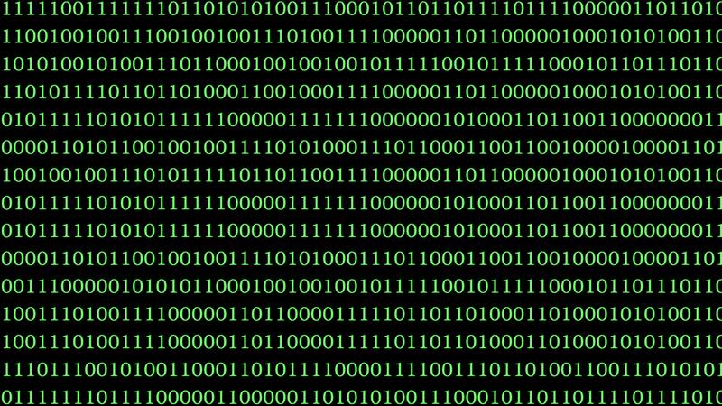 This abstract background showcases a series of green binary numbers arranged in a matrix format, representing digital data visually. Pro Video