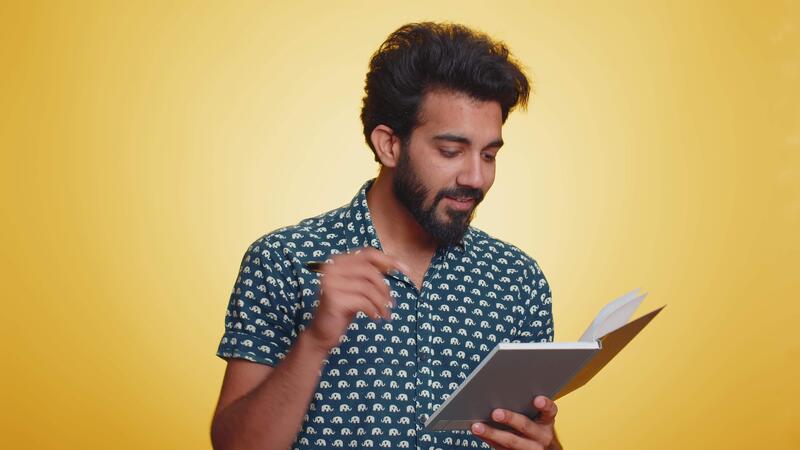 Man making notes, writing down thoughts with pen into notepad notebook diary, to do list, good idea Pro Video