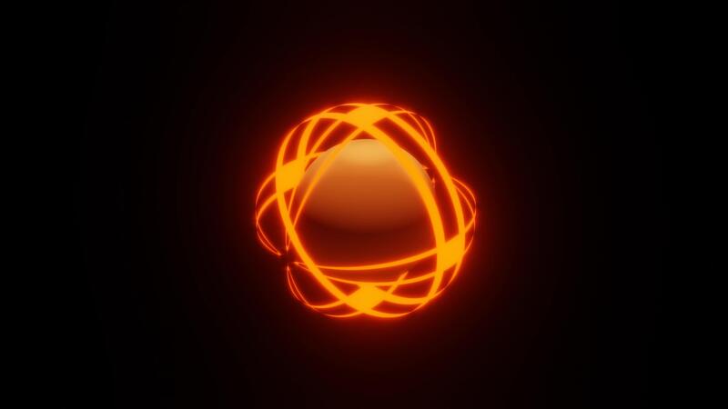 Mesmerizing spinning magical orange neon line and ball creating dynamic motion and glowing effect loop animation Free Video