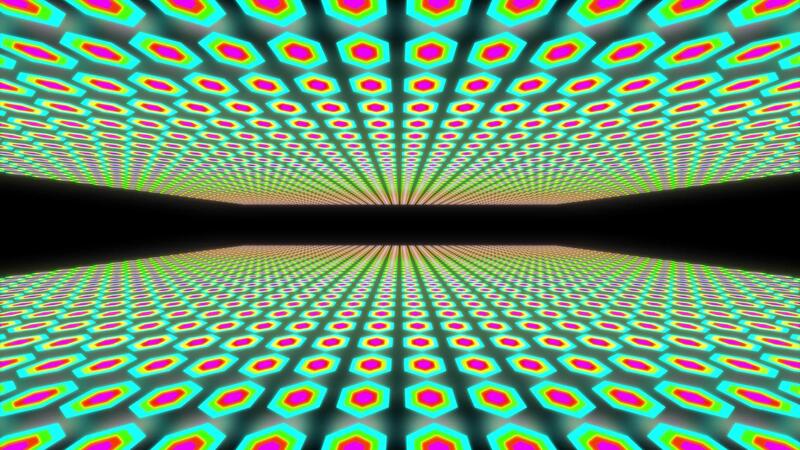 A motion graphic of hexagon shaped objects with a bright neon glow inside a space Pro Video