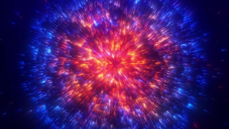 Abstract background with bright horizontal lines emitting rays of light and dust particles. Bright explosion of particles, firework of dots. Futuristic digital graphics Pro Video